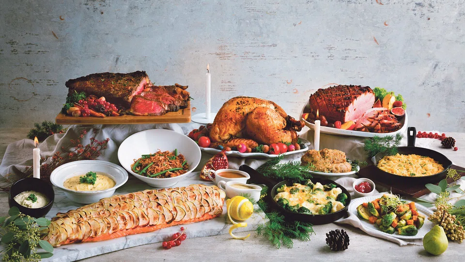 If you're entertaining at home, Dean & Deluca's whole roasted turkey (S$150), Angus Beef (S$140) or apricot-glazed Gammon ham (S$135) leave you plenty of time to mingle with your guests. End the meal with its signature rainbow log cake (S$85) or brandied cherry & almond fruit cake (S$68).