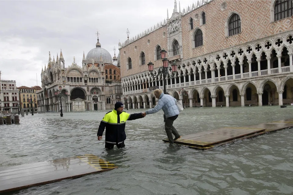Last month, the northern Italian city of canals was hit by the highest tide in more than 50 years, with tourists wading through flooded streets to seek shelter as a fierce wind whipped up waves in St. Mark's Square.