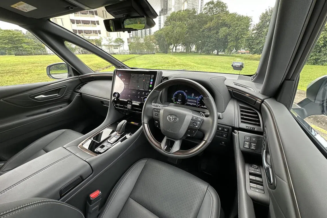 What’s more surprising is that the Vellfire doesn’t feel like a bus to drive. You’re always aware that you’re piloting a big beastie, but it’s easy to handle in cramped spots, especially when you switch the 360-degree cameras on. It actually has a tighter turning circle than, say, a Tesla Model Y, so it’s not a nightmare to hook around a U-turn.
