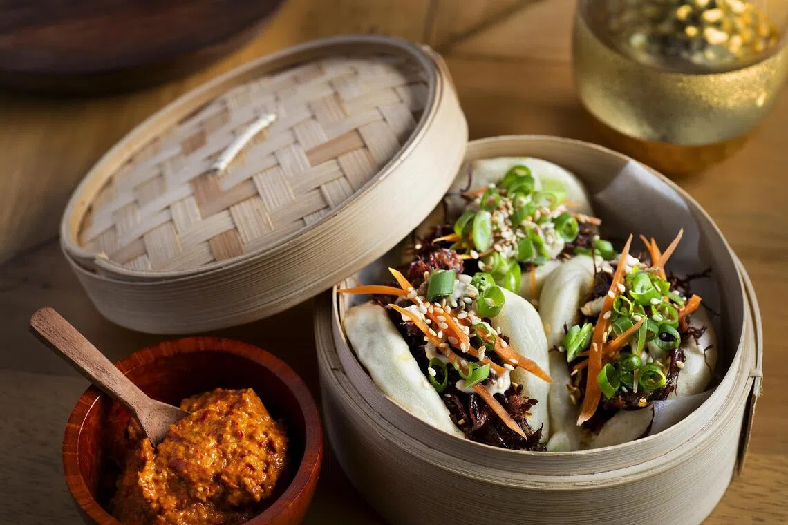 Lunch consists of sharing plates of reinterpreted local dishes such as crispy shredded beef in sticky Szechuan sauce, bao buns with yak meat, and daikon radish carpaccio. A memorable dessert was the suja tea panna cotta with sea buckthorn pearls, a creamy but not overly dense delight.