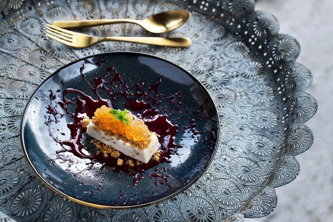On the first night, the appetiser options included a Himalayan trout ceviche with charred corn salsa and pineapple chilli jelly, as well as a coconut and ginger pumpkin soup with seed crumble and herb oil. The main dish options include sweet-and-sour cauliflower with coconut sticky rice, broccoli mousse and crispy spinach.
