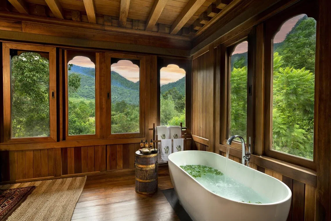 Of course, you can choose to take the day slow, and there are enough amenities on the property to help you unwind. The lodge’s open-air swimming pool is particularly inviting, surrounded as it is by indigenous flora and rugged mountains. The yoga studio is especially spacious. Meanwhile, the in-house spa offers traditional Bhutanese hot stone baths in wooden bathtubs – a must for first-time visitors.