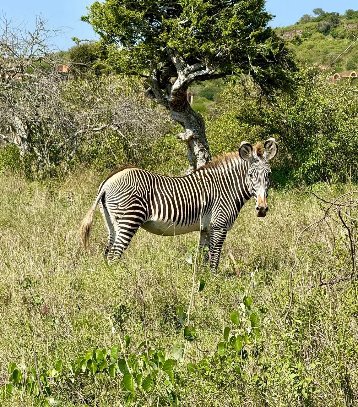 But they seem to be pee-less. They cross, and we go on our way, encountering common zebras – the Grevy’s is more rare and indigenous – warthogs and their perky bums; impala and their puny little cousins known as dik-diks, which move in pairs with the same partner for life.
