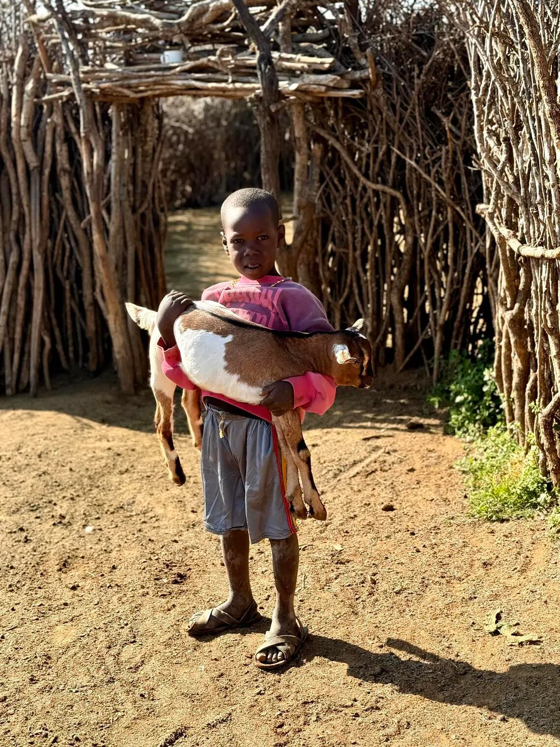 Cows are their lifeline, providing the milk they need daily, and should they sell one, it’s worth up to US$2,500 at the market. More likely, they would sell a goat, which fetches enough for them to buy sugar, flour, fruit, vegetables, maybe T-shirts for the youngsters. One of them, no more than four, wants to show off how strong he is, lifting a hefty baby goat in his arms. Strong kid.