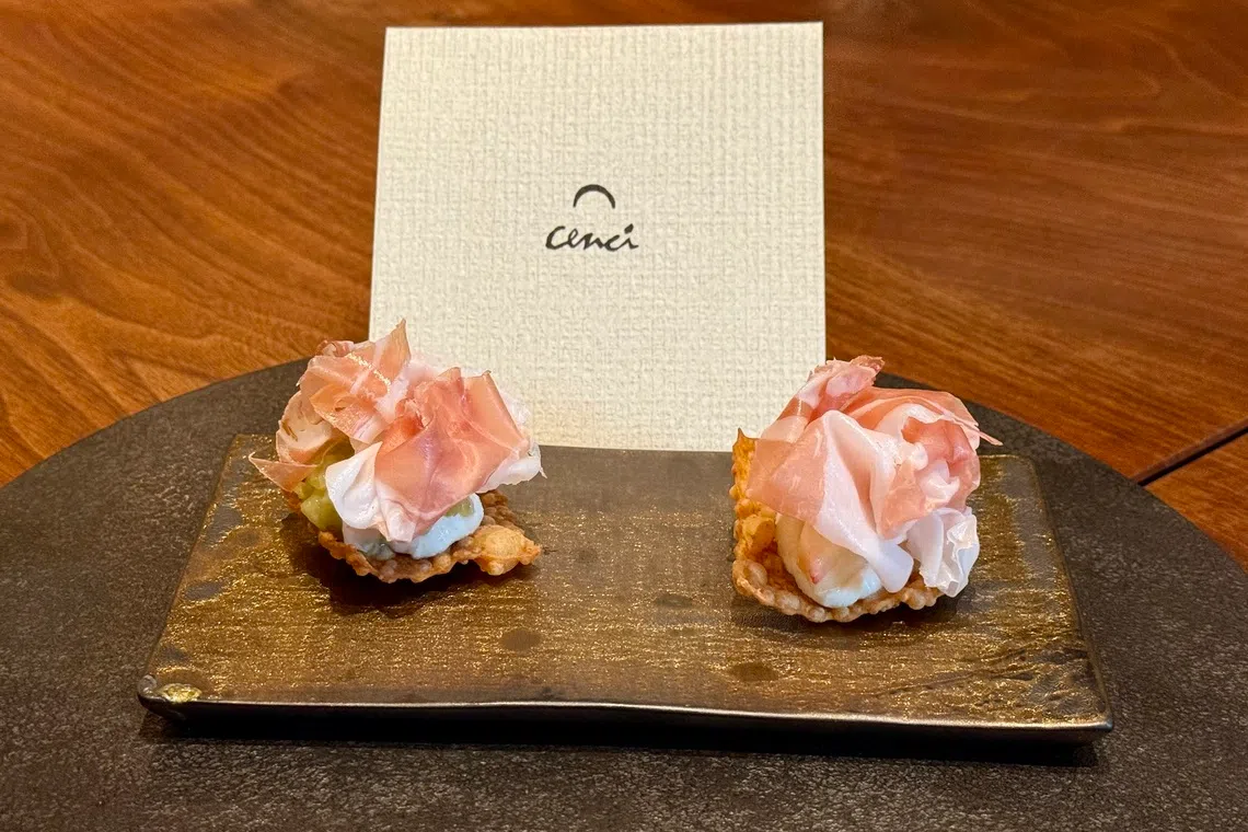 Named after the Italian sweet fried dough, you might start off with a deep-fried, savoury-fried cenci topped with Japanese prosciutto, peach and ricotta for a refreshing bite. Then you move on to a risotto of Japanese carnaroli rice cooked into a creamy texture without any dairy, mixed with octopus, tomatoes and celery. Steamed and fried courgette layered with tofu cream and roasted almonds is all about textures and balance.