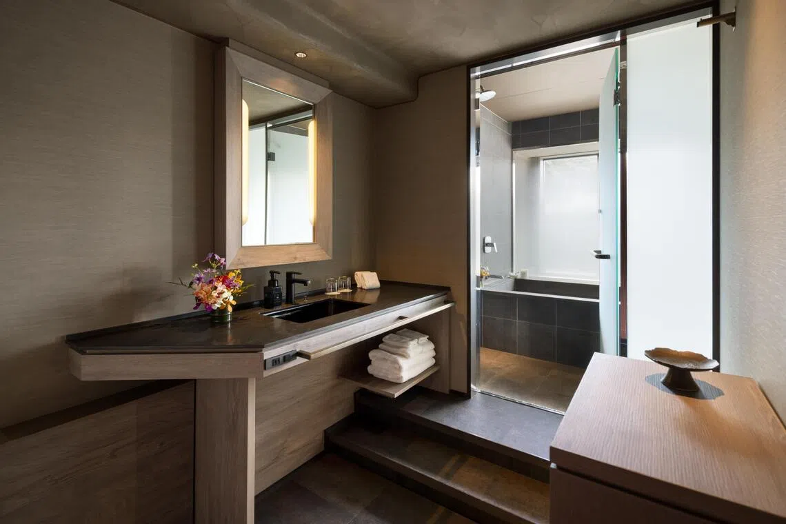 It’s one of many little discoveries to be made as you slowly experience the hotel that could use a shorter name. It’s not a property that screams Japanese heritage – it just subtly celebrates it. You can tell from its exterior: an understated five-storey structure in slate grey with ever-so-slightly angled edges, blending so well into its nondescript surroundings that your taxi almost drives by without stopping.