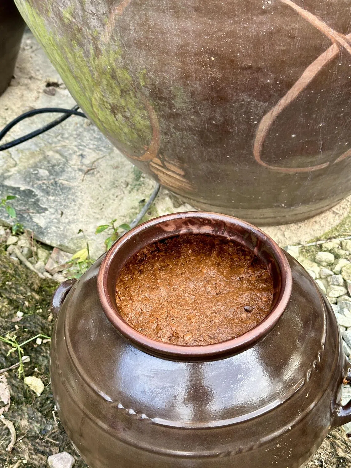 Changpyeong-meong is located in Jeollanam-do, a province also known as the larder of South Korea with its abundance of seafood, agriculture and greenery. The Kisoondo family home sits on a sprawling piece of land, with no neighbours except distant mountains, pine forests and some 1,000 clay jars known as onggi, standing in rows like stubby terracotta warriors silently guarding the precious brew within – an alchemy of soybeans, bamboo salt and water.