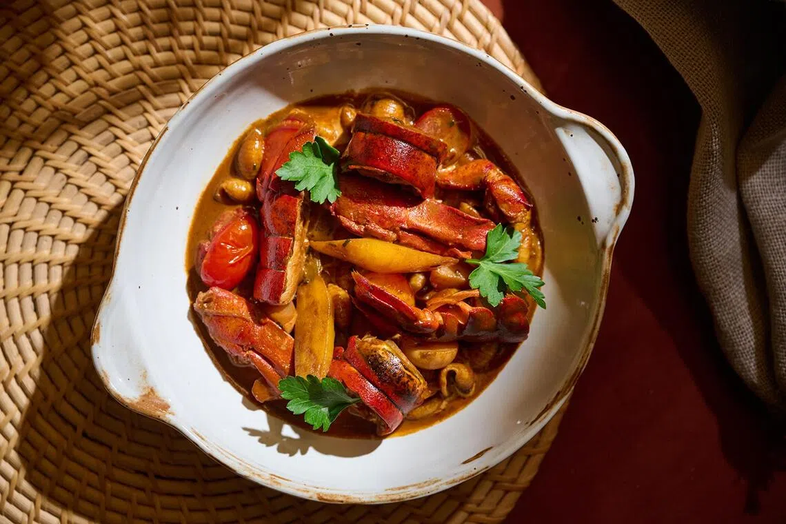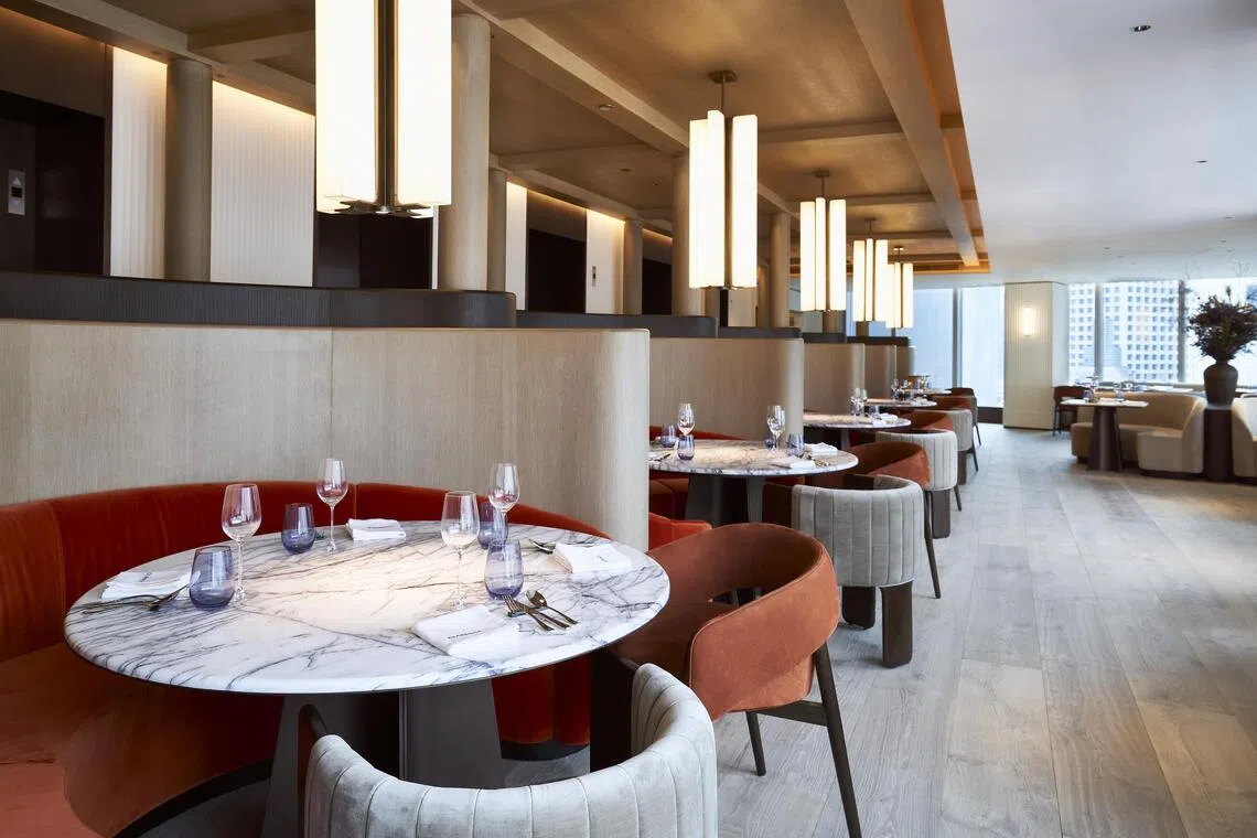 The one-Michelin-starred restaurant went through a major revamp during the pandemic. Now the plush interiors feature walls decked with striking blue lacquered panels inlaid with gilded brass trim, Chinese embroidered panelled artworks, and contemporary furnishings.