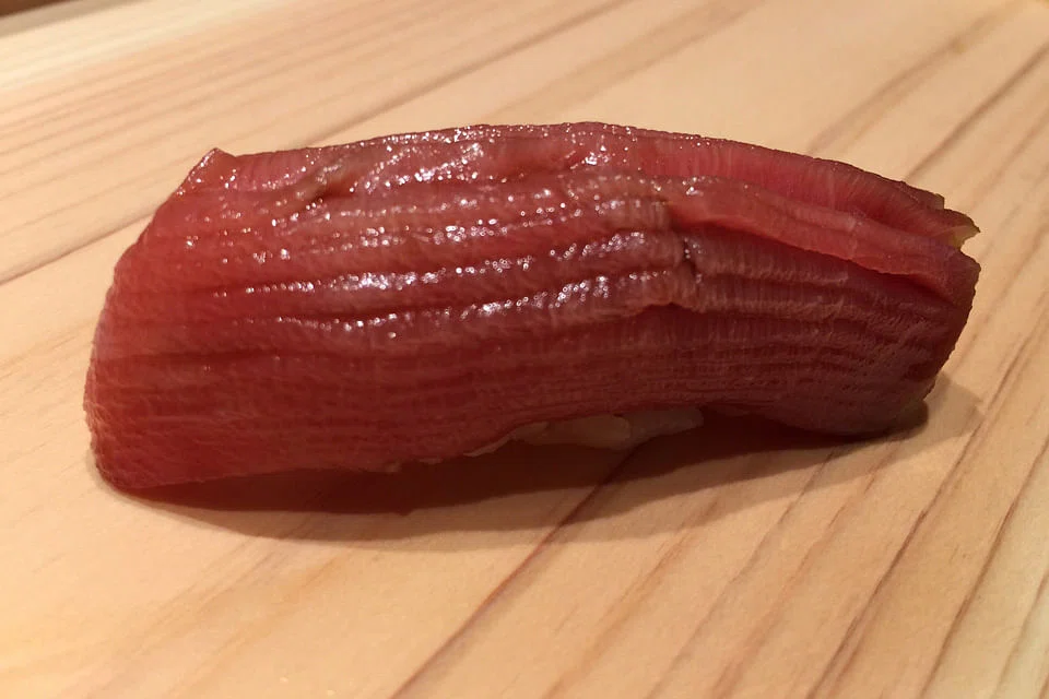 Slices of fish simply appear and he meticulously measures just enough rice to shape into prized morsels. What sets him apart is the way he ages and marinates his fish - most fish has to be aged at least a few days before it's palatable enough to be eaten but chef Ashino uses different techniques from ageing to knife skills to improve the fish texture so everything you eat slides down smoothly with no trace of sinew.