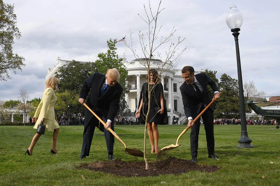[WASHINGTON] The photograph was seen around the world: US President Donald Trump and France's Emmanuel Macron, gilded spades in hand, shovelling dirt over a young sapling.