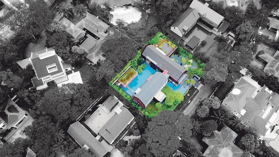 House with Shadows is a contemporary tropical home that revolves around garden spaces.