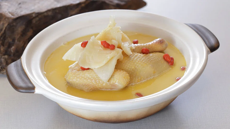 There are some good initial signs. Such as the happy chicken, which is slow-cooked for hours with fish maw to produce a milky but light broth studded with goji berries and bone-in chunks of dark meat with an impressive suppleness and subtle umami.