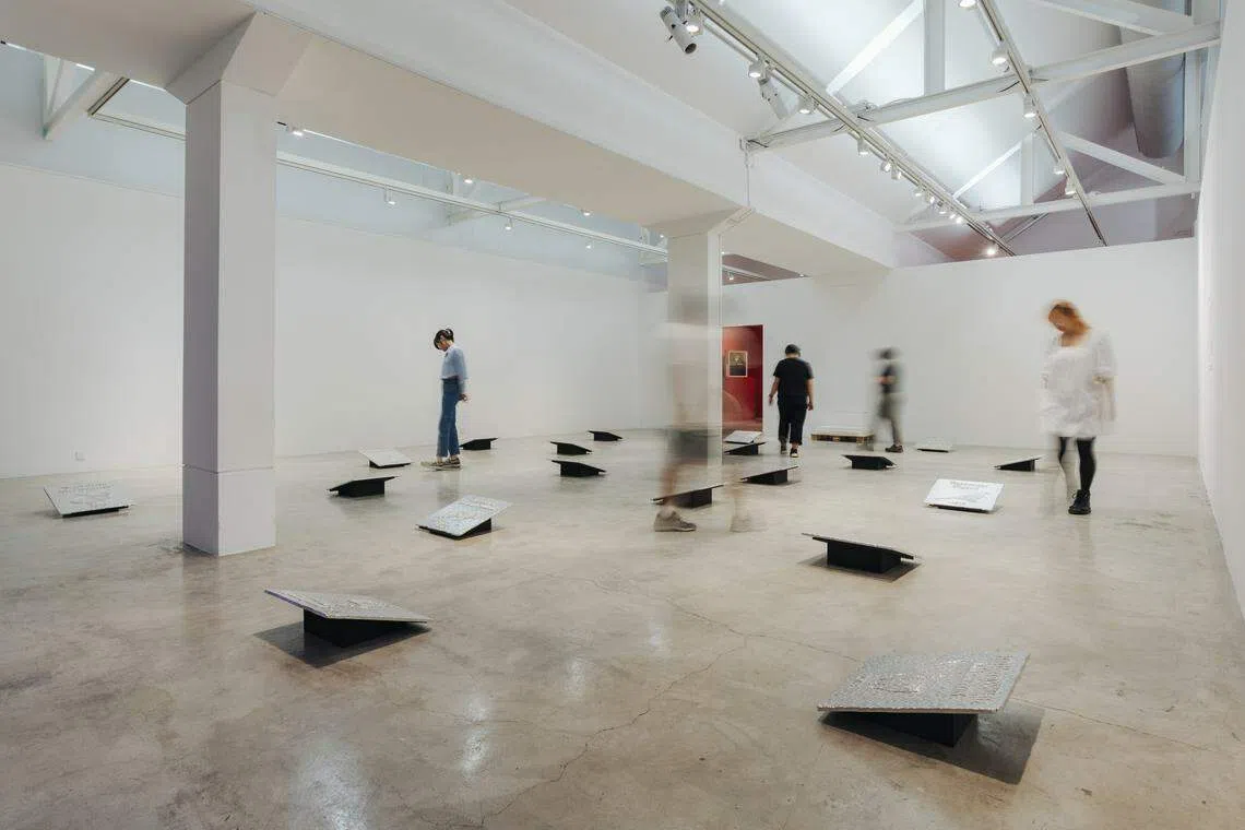 AT THE centre of STPI’s gallery space, there is a conceptual graveyard with 20 tombstones for 20 extinct animals. They include the dodo bird, golden toad, passenger pigeon, Zanzibar leopard and Javan tiger. The tombstones are shaped in the form of aluminium plates, each with an engraved image of an animal. Visitors are given pieces of paper to place above the tombstone and rub a crayon on it. In doing so, they replicate the image and keep it as a form of commemoration – keeping the animal “alive”, so to speak.