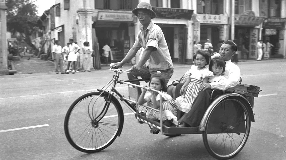 Wander along Clarke Quay and you'll see a host of 'trishaw uncles' waiting for tourists or those drunk enough to pay S$30 for a 10-minute ride. But in pre-independent Singapore, they were probably the original Uber. Evolved from the man-powered rickshaw, trishaws first surfaced in Singapore in 1914, but gained popularity in the 1940s, especially during the Japanese Occupation. Here, a family goes Chinese New Year visiting in their rented wheels.
