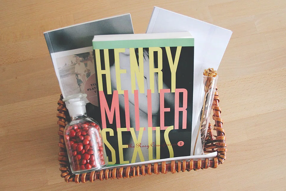 There are five bundles priced at S$69 apiece, with a variety of titles on offer. For example, one of the bundles, each of which also includes a glass bottle filled with saga seeds and a typewritten note, contains Sexus by Henry Miller, Making Love with Scrabble Tiles by Joshua Ip, and The Lover's Inventory by Cyril Wong.