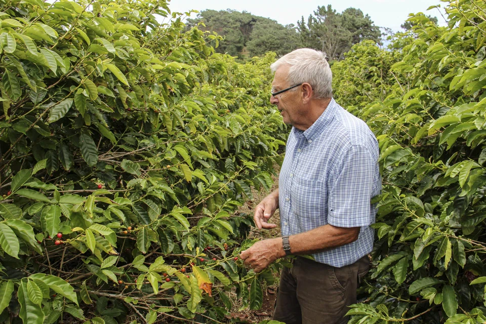 "It's a hobby really," said Mr Bolton, 74, from Britain, visiting his small plantation. He produces less than 400kg of coffee a year.
