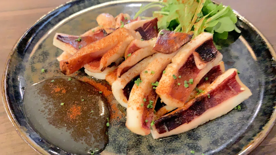 A brief exposure to Spanish cuisine is reflected in the Surume Ika No Kopa Yaki (S$18.80) - translated as "squid grilled in a Kopa oven" - the Japanese equivalent of the Josper grill -- sprinkled with paprika powder and a squid ink aioli to dip in. The squid is cooked a few seconds too long but the strips are still pliable enough and the aioli is really rather nice.