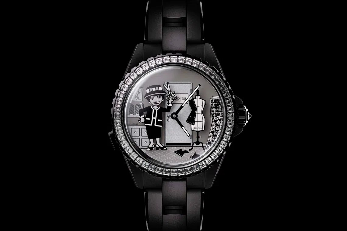 Chanel’s Watch Creation Studio must have had plenty of fun mixing haute couture with haute horlogerie, judging by the whimsical timepieces it has produced as part of the Couture O’Clock capsule collection. Some of the brand’s core watch collections including the J12 are reimagined with the house’s couture workshops on Rue Cambon in Paris as its inspiration. Our favourite is the J12 Atelier Couture Automate Calibre 6 watch which sets the Mademoiselle dancing at the press of a button. Limited to 100 pieces, the watch took five years to develop and this is the first Automaton movement designed and assembled by the House Watch Manufacture.