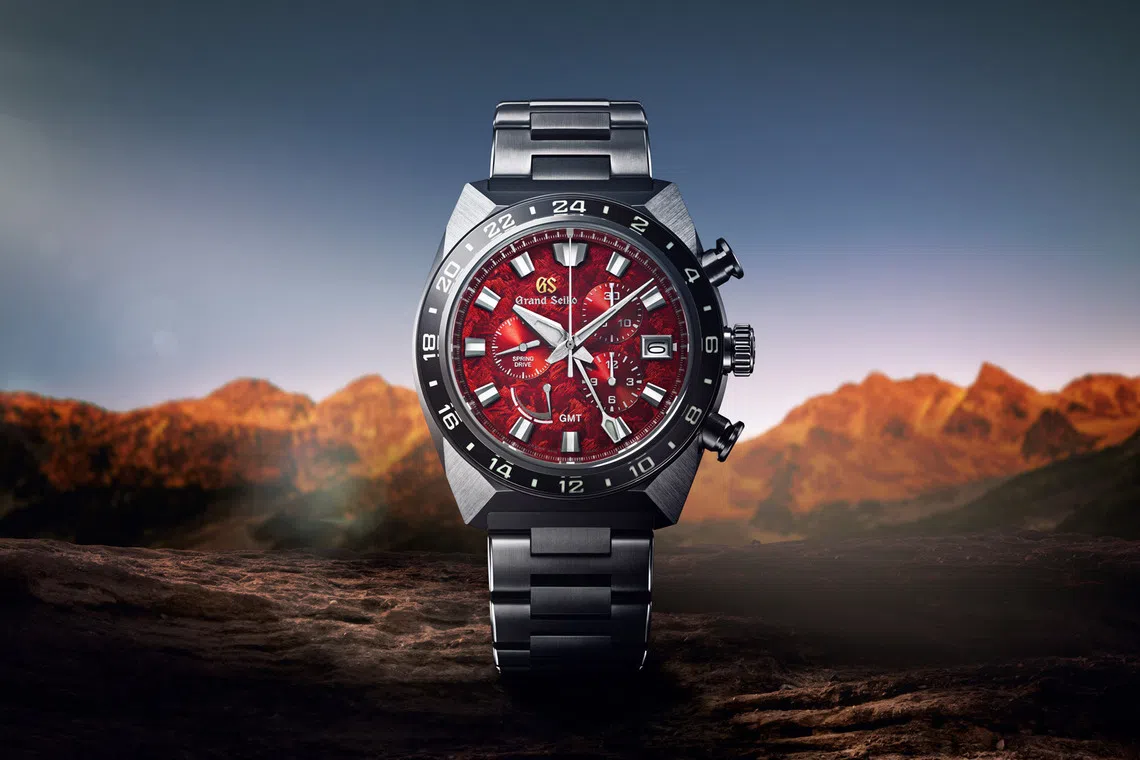 To celebrate the 20th anniversary of the 9R Spring Drive movement which powers all Grand Seiko Spring Drive watches, the brand has rolled out a new watch that pays homage to the brand’s birthplace in Shinshu region. Using a new dial-processing technology, the Grand Seiko Spring Drive Chronograph GMT recreates the ever changing colours of summer mornings over the nearby Hotaka mountain range on the face of the watch. The angular case design and claw-like hairline-finished lugs are inspired by the lion, Grand Seiko’s brand symbol since its inception in 1960. To keep the watch light and comfortable, high-intensity titanium is used to construct both the case and the bracelet.