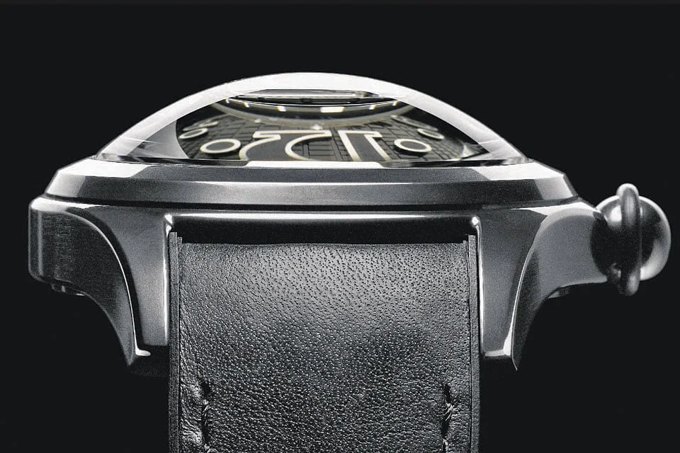 The 2015 Bubble, while retaining all the design codes of the first watch, is even bigger with a 47mm stainless steel case in brown or black PVD. That's surely going to be heavy on the wrist but the short, curved lugs allow the watch to hug the wrist snugly.