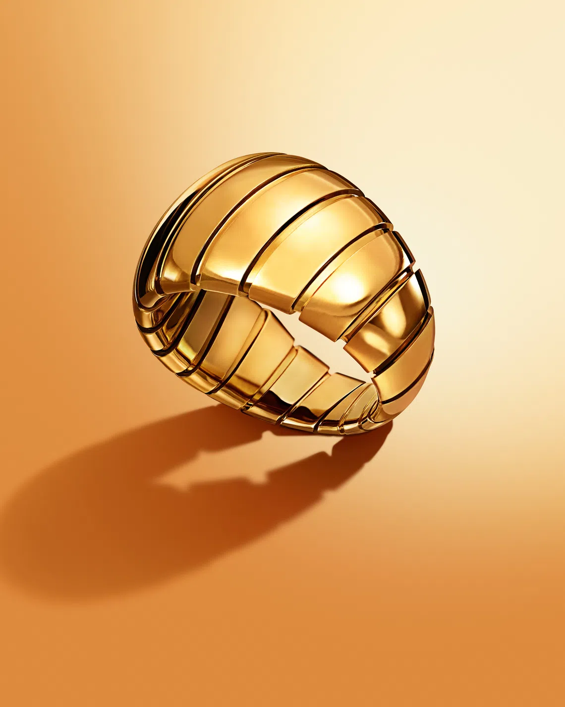 Named after the gas pipe used to transport pressurised gas in the 1920s, Tubogas reflected the aesthetics of a time when industrial design boomed in Europe. From the 1970s, the design became truly iconic. Starting with the bracelet of Bvglari’s Serpenti watch, the Tubogas concept extended to its other collections, such as the Monete, Parentesi and Bvlgari Bvlgari.