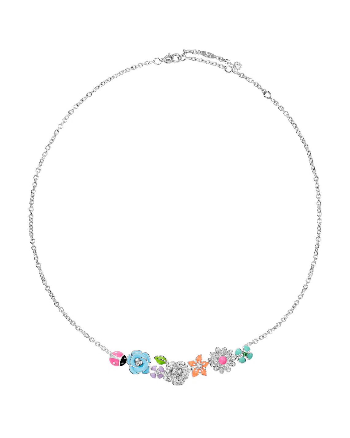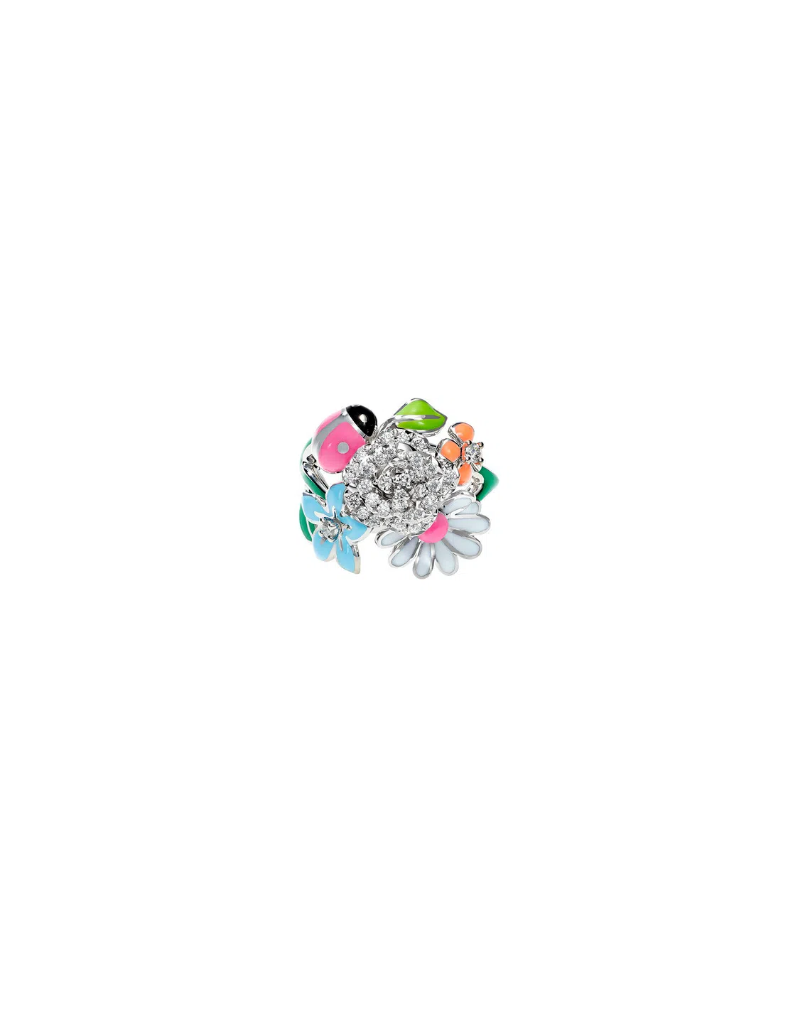 Inspired by founder Christian Dior’s garden at Milly-la-Foret, the Diorette collection celebrates the resplendence of nature with flowers and ladybirds in pastel hues. Victoire de Castellane, creative director of Dior Joaillerie, achieves these light and happy tones using hand-applied lacquer, before adding sparkle with diamonds.