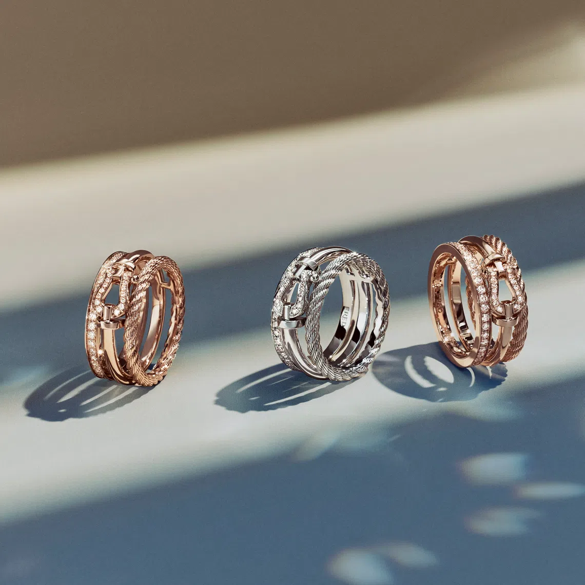 Over at Fred, the French jeweller has added to its emblematic Force 10 collection a new chapter called Force 10 Rise. The novelties ride on the sailing-inspired designs of Force 10 – first created almost 60 years ago in 1966 – where sailing cables and buckles in the shape of a marine carabiner are key motifs.