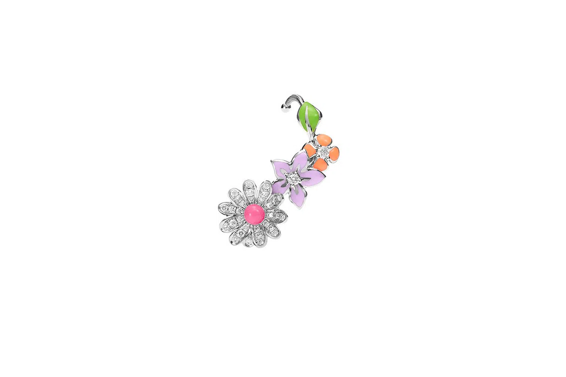 The four new creations this year include a necklace – which also sports a tsavorite in the centre of a flower – a ring and two single earrings in white gold. These are cheerful pieces full of the flavours of spring.
