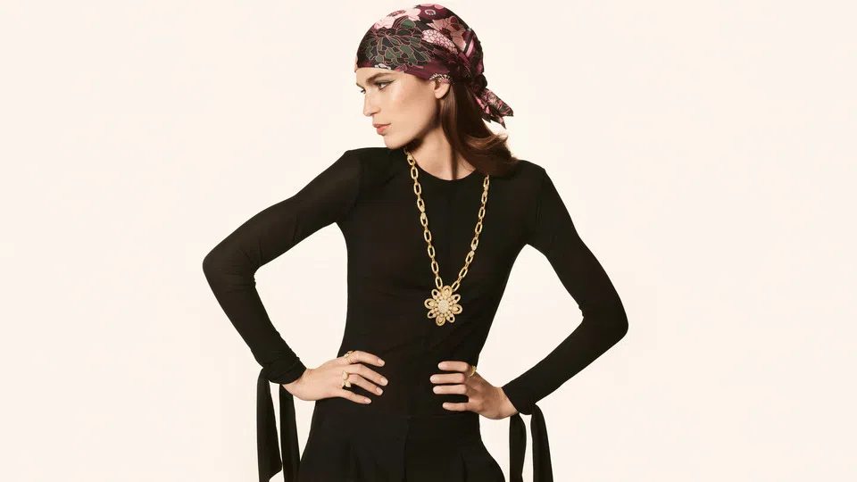 There are three necklaces that most closely resemble the original, with two of them in yellow gold and diamonds. They are convertible to be worn in four different ways – as a shorter necklace, a brooch and a pair of bracelets that also join to form a choker. Meanwhile, the third necklace – a high jewellery piece in white gold – is fully paved with diamonds.