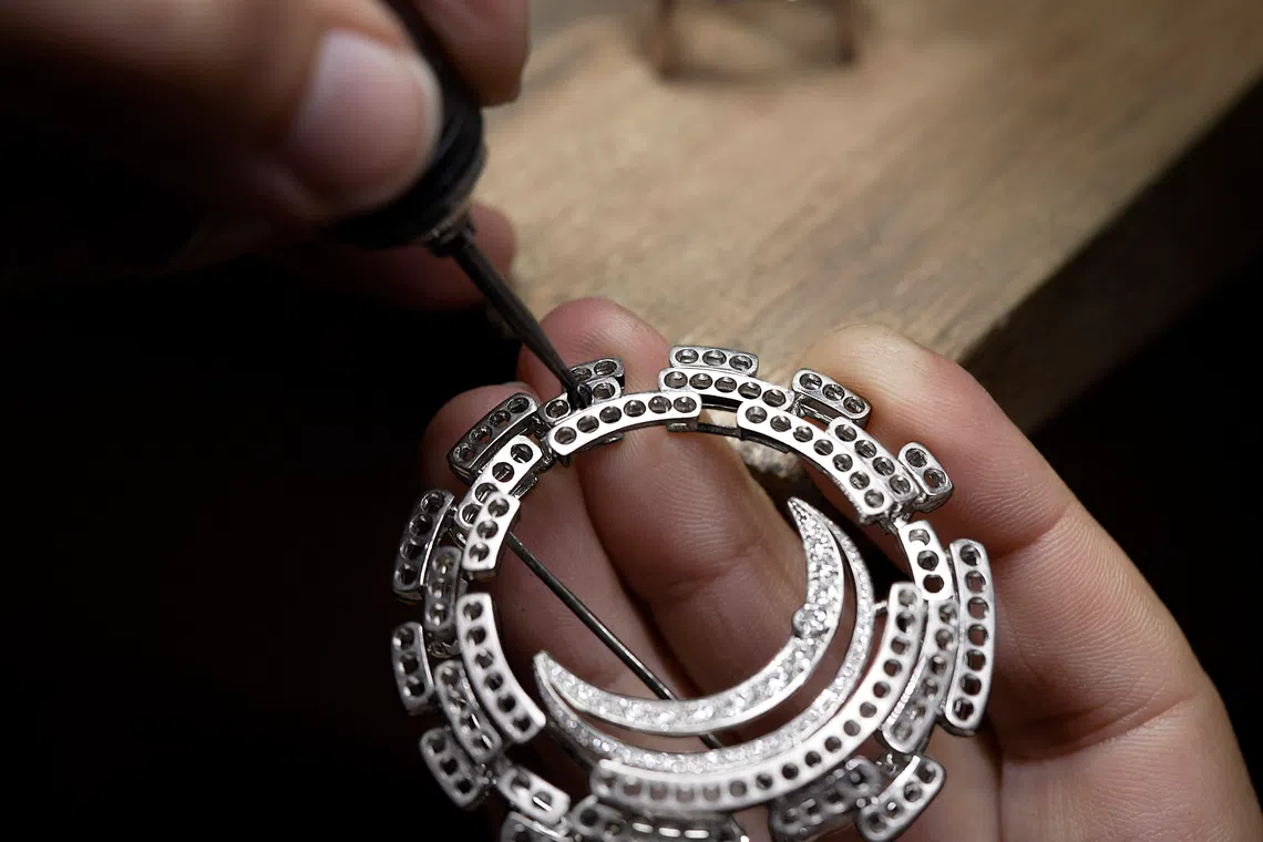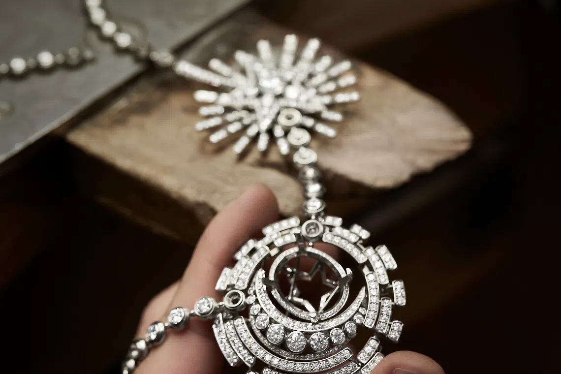 “I wanted to create a different vision of this legacy, by setting these celestial elements in motion,” explains Leguéreau. “To do this, I have given figurative expression to the shimmer of the comet, the halo of the moon, and the radiance of the sun. These graphic motifs, often detachable, amplify the brilliance of the jewels. The choice of stones and their settings were also designed with this in mind.”