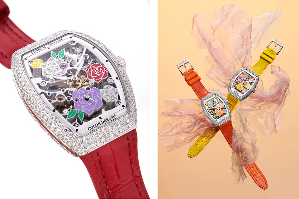 And the romantic horological bouquet comes in a wide array of colours, different precious metals, as well as in the trademark Color Dreams combination.