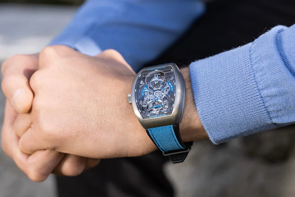 Not satisfied, Franck Muller first replaced the original with a twin tourbillon system that rotated on 2 axes. Then in 2004, it added another axis.