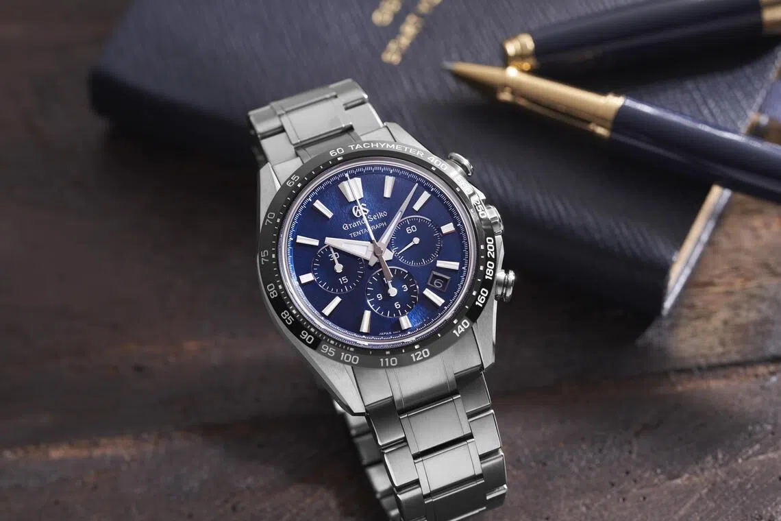 The timepiece is driven by a new version of Grand Seiko’s hi-beat movement which beats 10 times per second. It’s highly accurate (plus 5 to minus 3 seconds per day) in measuring the time of the day as well as elapsed time. The movement is fitted with an energy-efficient escapement and two barrels that allow the watch to run for three days, even when the chronograph is activated. This makes the Tentagraph the 10-beat chronograph with the longest power reserve in the market.
