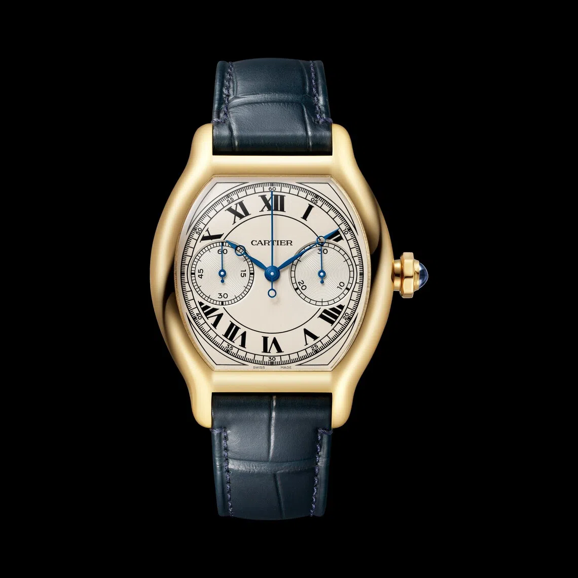 There are plenty of classic Cartier watches from its archives which collectors would love to see the Maison revive and those hoping for a return of the Tortue (French for ‘tortoise’) had their prayers answered this year. The Tortue’s history can be traced back to 1912 when Louis Cartier designed a watch inspired by the shell of a tortoise because he admired it for its protective form and resilience. It not only made a bold statement with its distinctive case shape but the watch was also actually known to be very comfortable on the wrist, making it popular with royalties and celebrities alike. The 2024 editions come in platinum and yellow gold; and are available as either a monopusher chronograph or time-only watch. While the design of the iconic case stays the same, the watches have new Tortue-shaped movements which can be viewed from the open caseback. Its profile is also now slimmer so this updated classic wears even better than before.