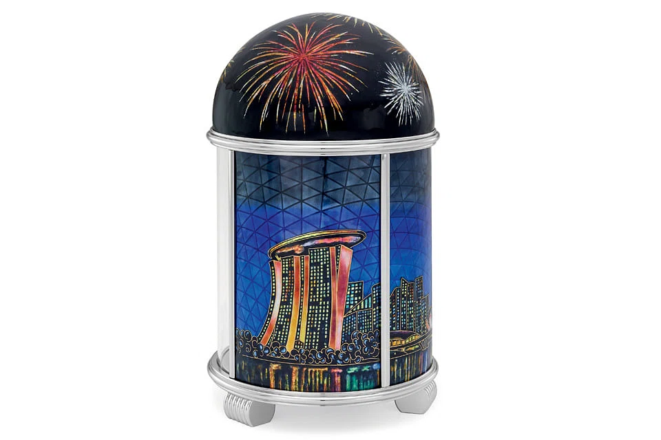 Patek Philippe has created three unique dome table clocks for SG50 in cloisonné enamel. These will be auctioned, with the money raised going to various charities.