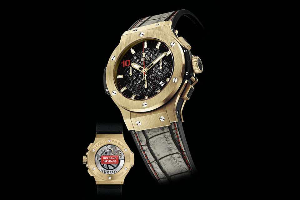 The yellow-gold case version, apart from paying tribute to Singapore, was made to mark the 10th birthday of Hublot's highly successful "Big Bang" model.