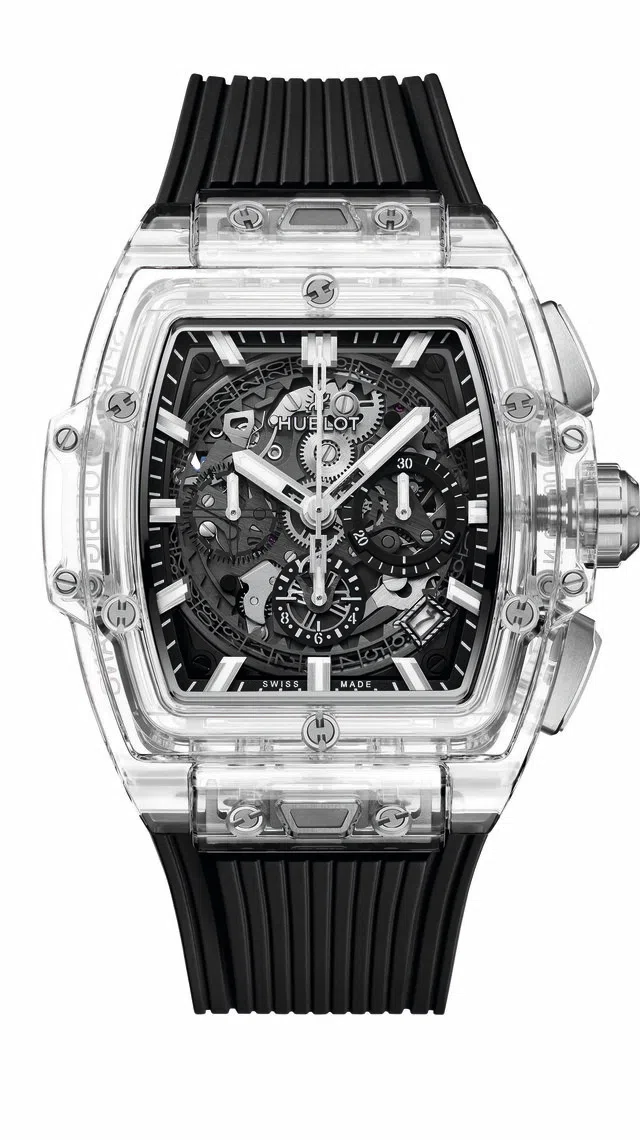 Both watches showcase Hublot’s technical expertise and mastery over sapphire – a material that is typically hard to work with but admired for its robustness.