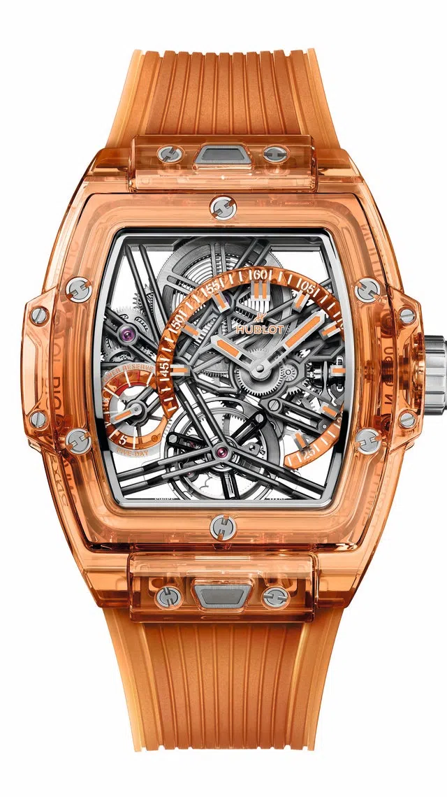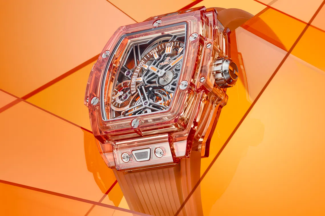 It took Hublot two years to develop the world’s first orange sapphire, and the HUB6020 Manufacture manual-winding movement that powers the watch boasts a whopping 115 hours of power reserve.