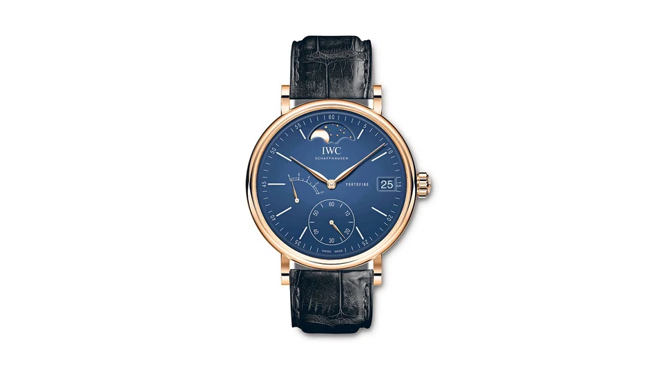 The watches are from different lines in IWC's portfolio - the Portugieser, Portofino, Pilot's Watch and Da Vinci - but they all share a common feature: the dial of the watches is white or blue-lacquered, reminiscent of heritage enamelled finishes.