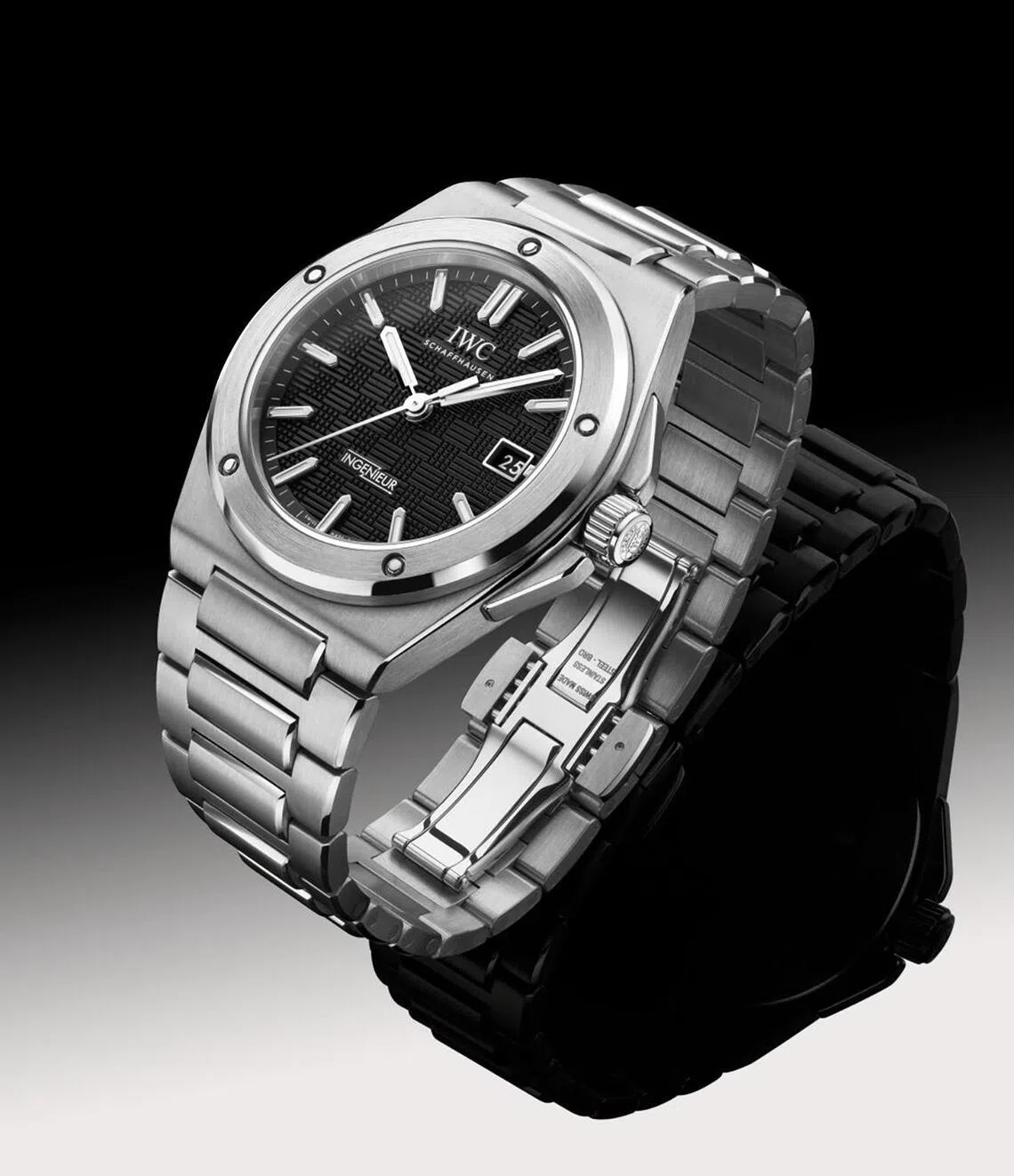 The integration of an elaborately finished folding clasp highlights the beauty and slimness of the H-link bracelet, while a newly designed crown protector underscores the sporty character of the Ingenieur Automatic 40.