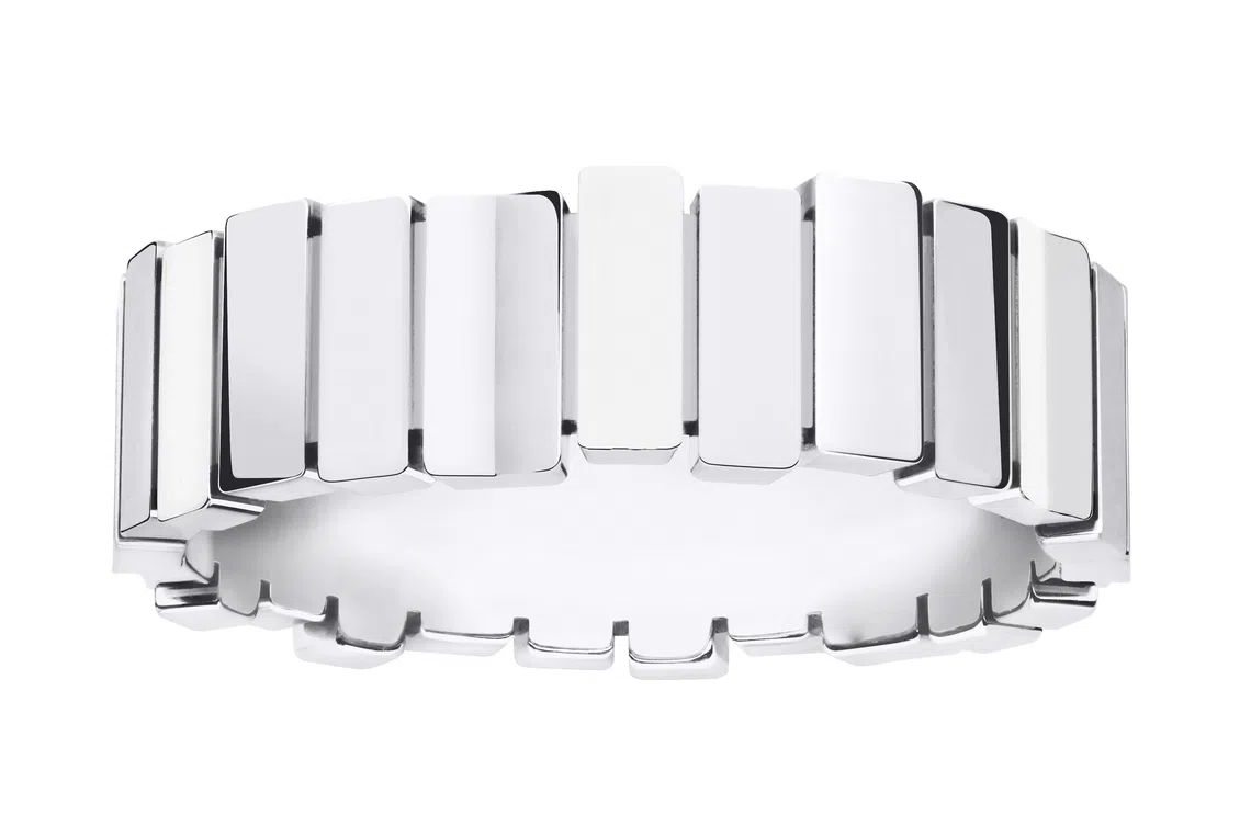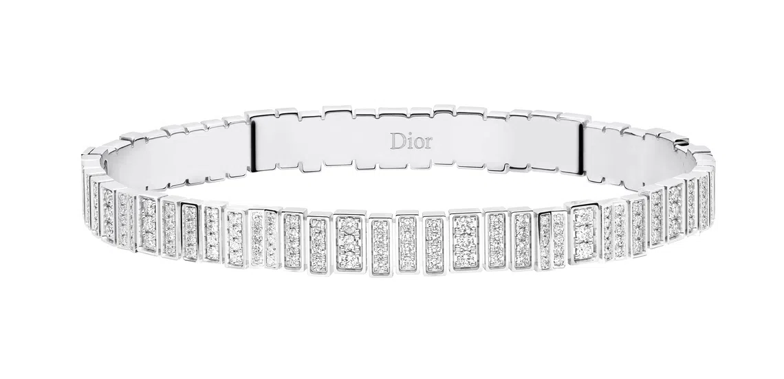 From circles and stars, roses and curves, de Castellane moves to a completely different aesthetic with Gem Dior, which was first launched in 2021. In this collection, geometric motifs rule – with little rectangles lined up in an irregular fashion. This genius idea gives what is otherwise a clean, simple pattern an unexpected structure and a rhythm of its own.