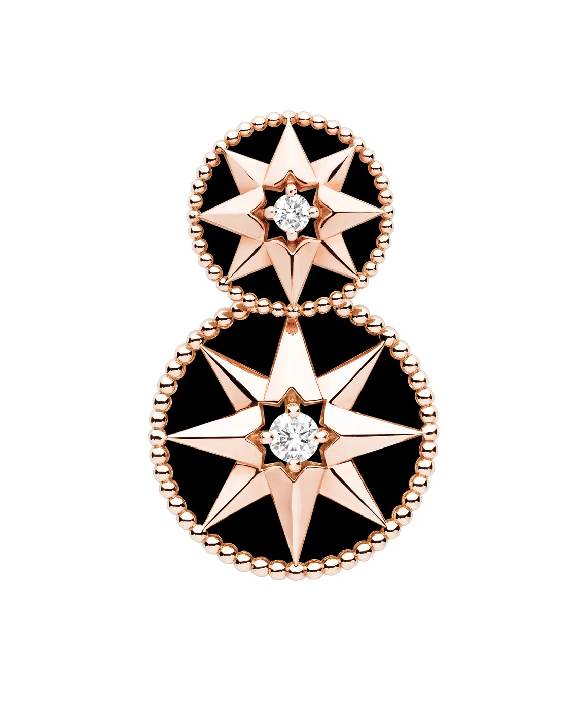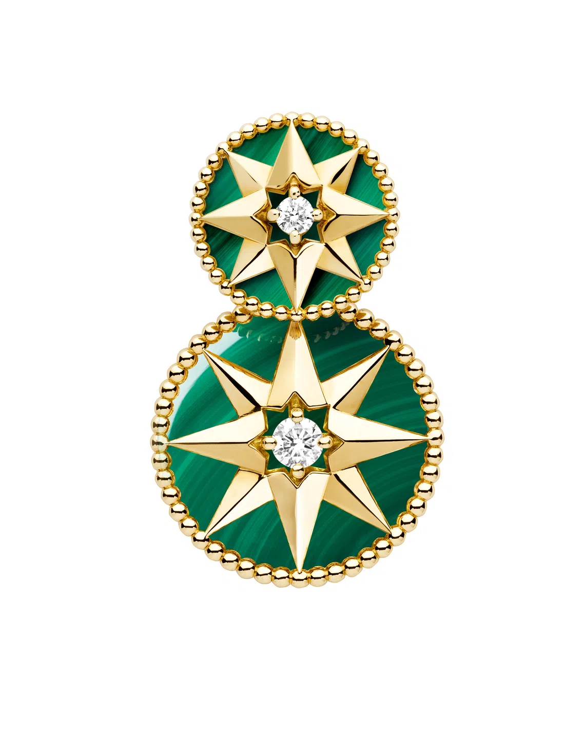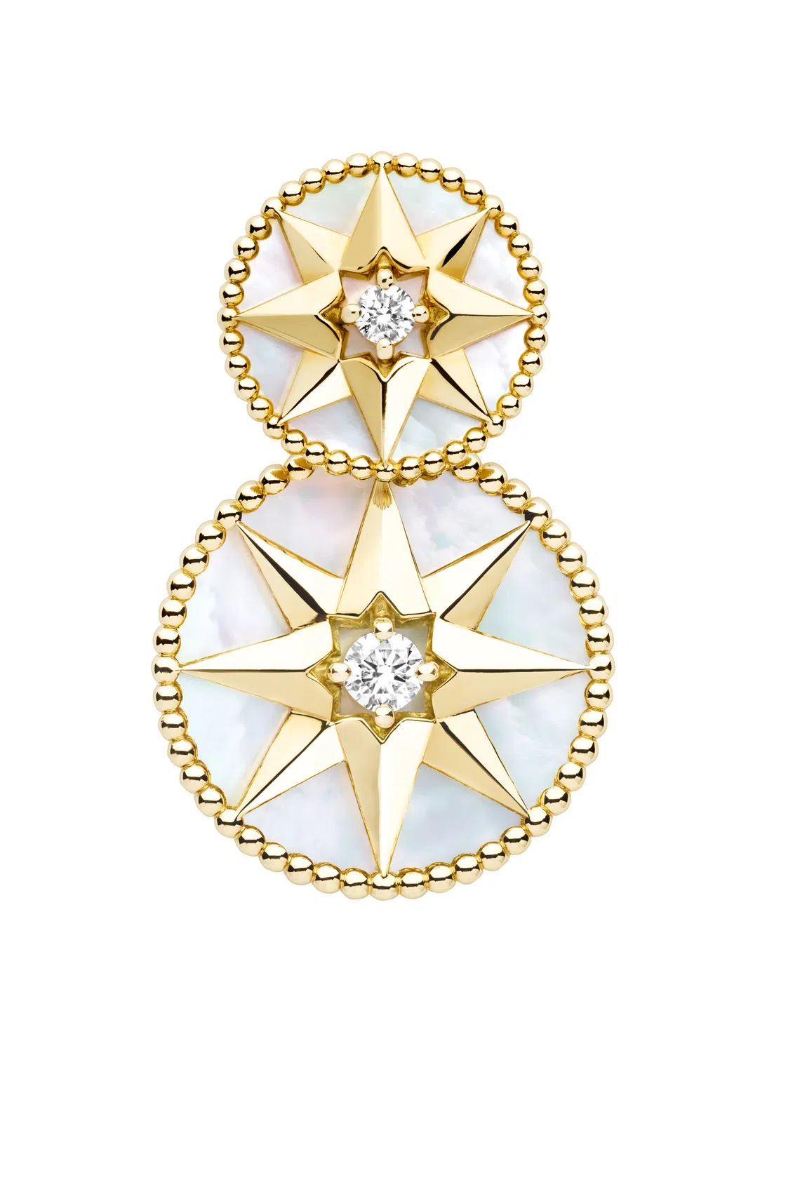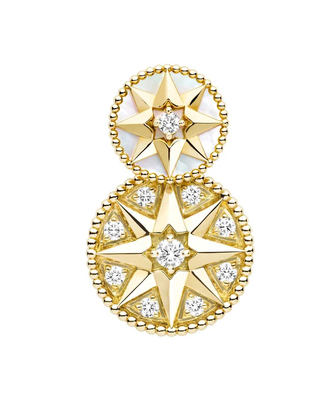 The latest version is no less clever. In it, de Castellane takes inspiration from the emblematic Dior Tribales earrings to create exceptional pieces that bring together a compass rose disc accompanied by a removable and reversible pendant composed of ornamental stones or pavé diamonds. The length of the earring is adaptable and each one may be paired with other single earrings from the collection.