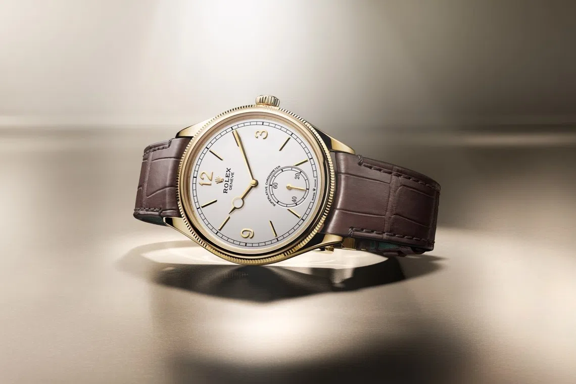 Perpetual 1908 (S$30,800) In one fell swoop, Rolex replaced its Cellini line of classic timepieces with the new Perpetual 1908, a reference to the year the Rolex trademark was birthed. Imagine a classic vinyl record remastered for a digital era – that’s the vibe we are talking about. While the case is a contemporary 39 mm in diameter, stylistic nods to an earlier era abound: a fluted bezel, a railroad minute track, subsidiary seconds at 6 o’clock; and a hollow Mercedes hour hand.