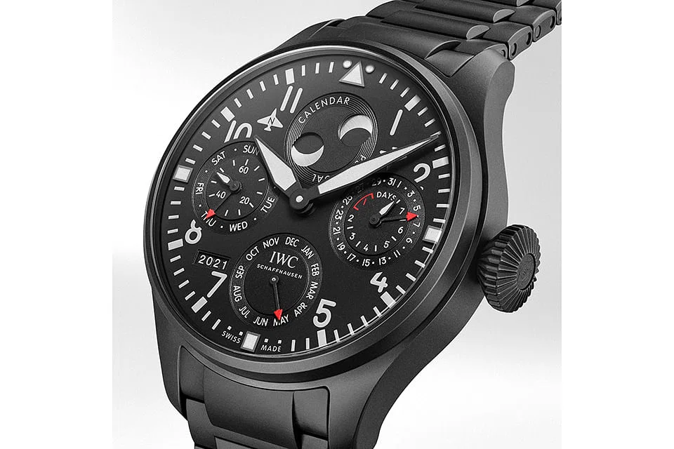 Annual production of the 46.2-millimetres Perpetual Calendar TOP GUN Ceratanium is limited to 150 pieces.