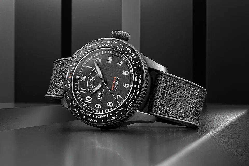 THE Pilot's Watch Timezoner TOP GUN Ceratanium is the first TOP GUN model with a Timezoner complication - a travel timepiece that has 24 cities on it, with each one representing one of the international time zones. The 46 mm watch is also powered by a Pellaton movement that has a power reserve of 60 hours.