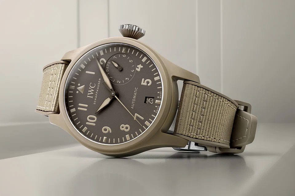 The ceramic IWC used to craft the sand-coloured cases is among the hardest substances on earth, second only to that of diamonds. It's made from very pure raw materials employing highly production processes.