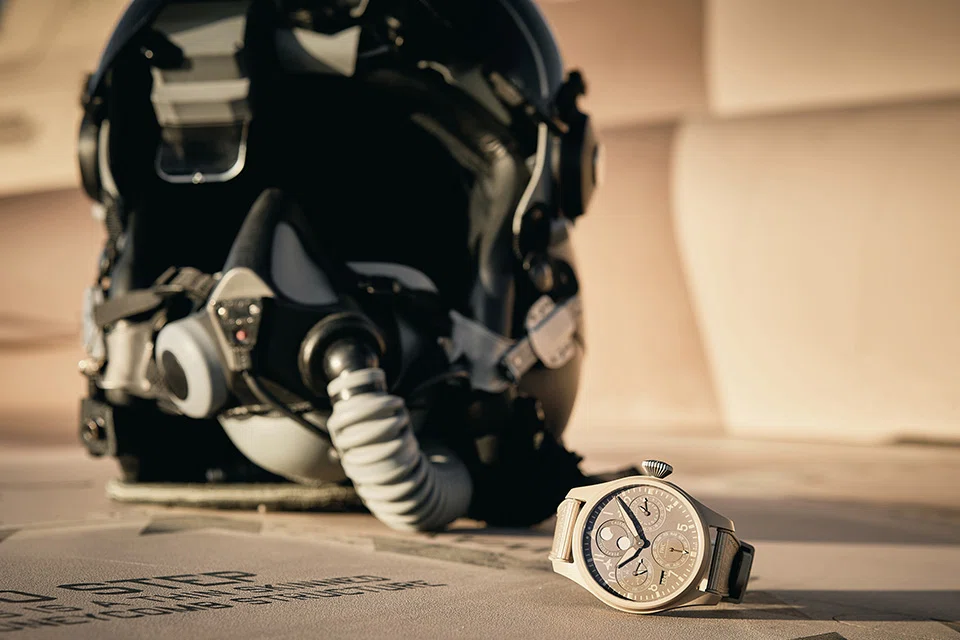 IWC Schaffhausen continues to expand its TOP GUN models in sand-coloured ceramic, rolling out a perpetual calendar and a time-only watch in the Big Pilot's Watch collection