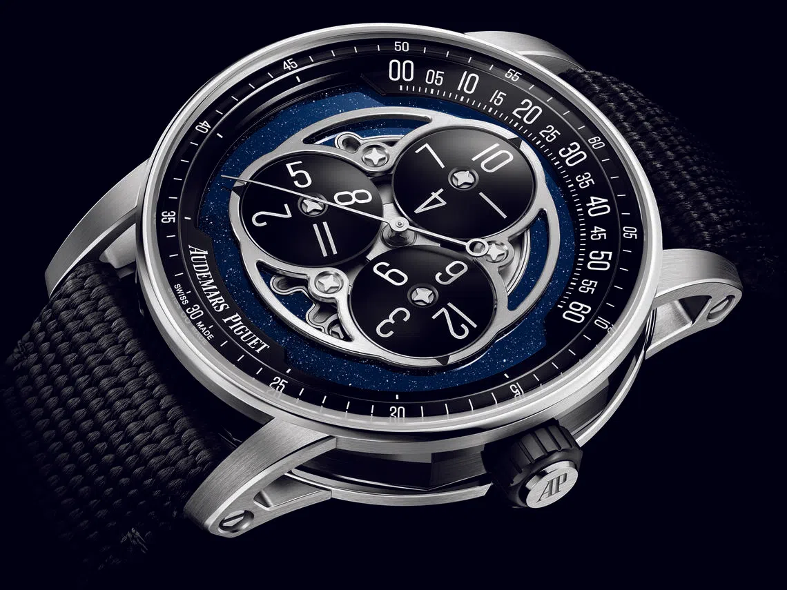 Code 11.59 by Audemars Piguet Starwheel is a horological complication that first appeared in the 17th century. The “wandering hours” was a timepiece where time was displayed by “a system of satellites that gravitates along a minutes scale in the form of an arc”. It didn’t catch on and dropped out of sight. Audemars Piguet tried to revive the system in 1991 and called it the Starwheel, apparently with little success. Now it’s hoping to give the Starwheel a new lease of life with its Code 11.59 collection.