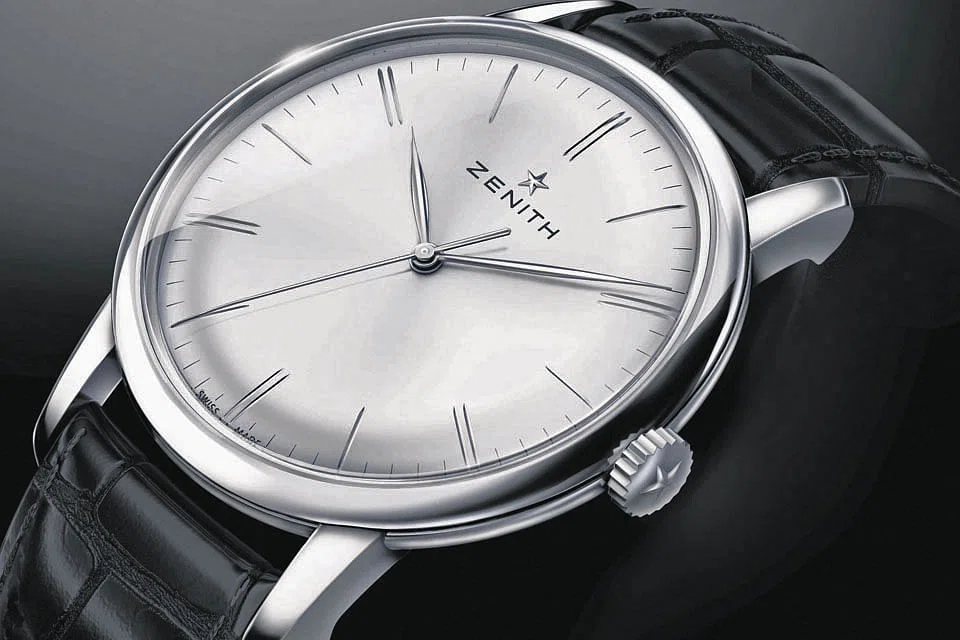 WITH this classic and elegant timepiece, Zenith wants to raise the profile of an ultra-thin in-house calibre that's long been overshadowed by the brand's legendary El Primero chronograph movement. The Elite base, as the movement is called, was launched in 1994 and picked as the Best Movement of the Year that year.