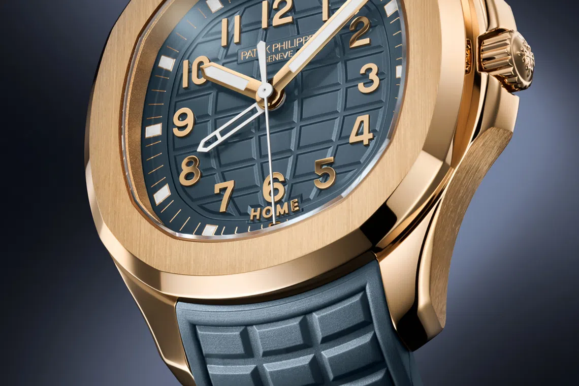 Even so, the new watch remains striking, thanks especially to the opaline blue-grey dial with an embossed Aquanaut motif, matched with an integrated strap in an ultra-resistant blue-grey composite material bearing the Aquanaut pattern. The 38.8 mm case is also enhanced by contrasting polished and satin finishes.